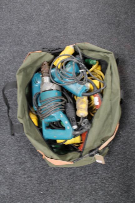 A bag containing 110V tec guns and drills