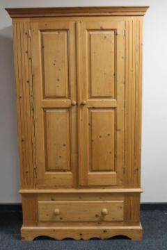 A pine double door hanging wardrobe
