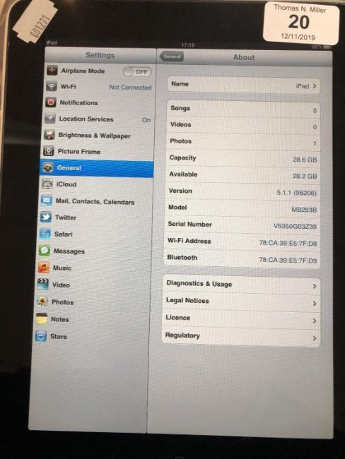 18.) The seller or consignor of mechanical or electrical goods warrants and undertakes to Thomas N. Miller that any such items are safe if reasonably used for the purpose for which they were designed and are free from any defect not obvious on external inspection which could prove dangerous to human life or health , and will indemnify the auctioneers, their servants and agents against any loss or damage suffered by any of them in consequence of any breach of the above warranty and undertaking. The seller also authorises Thomas N. Miller to dispose of any items which, in the considered opinion of the auctioneers, are of no saleable value.