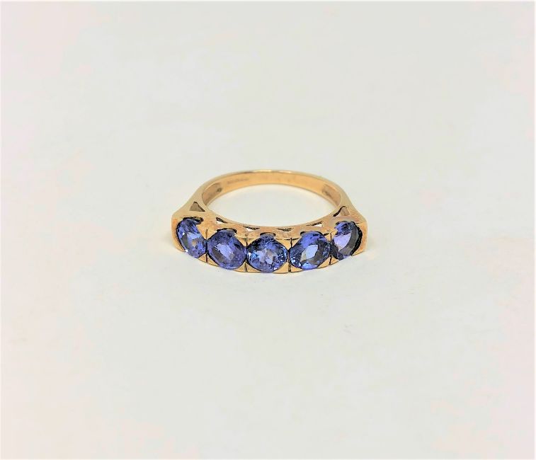 A 9ct gold tanzanite five stone ring, size N