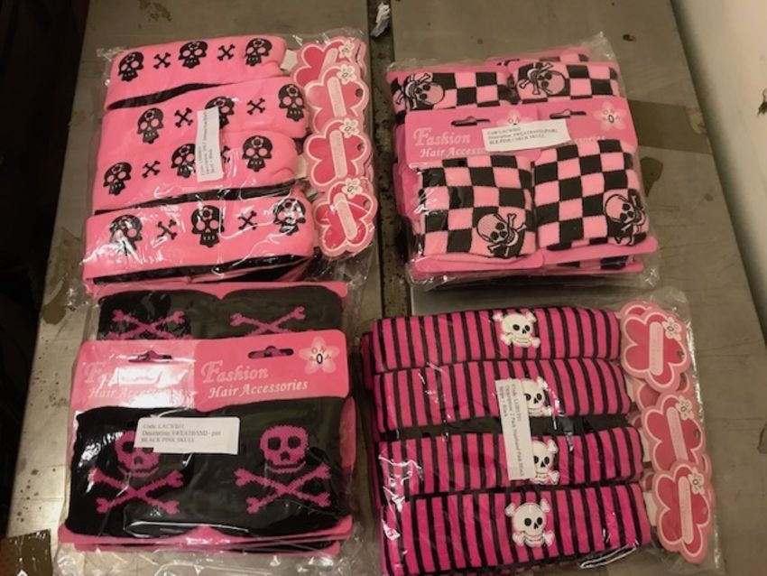 A box of several hundred hair bands and wrist bands