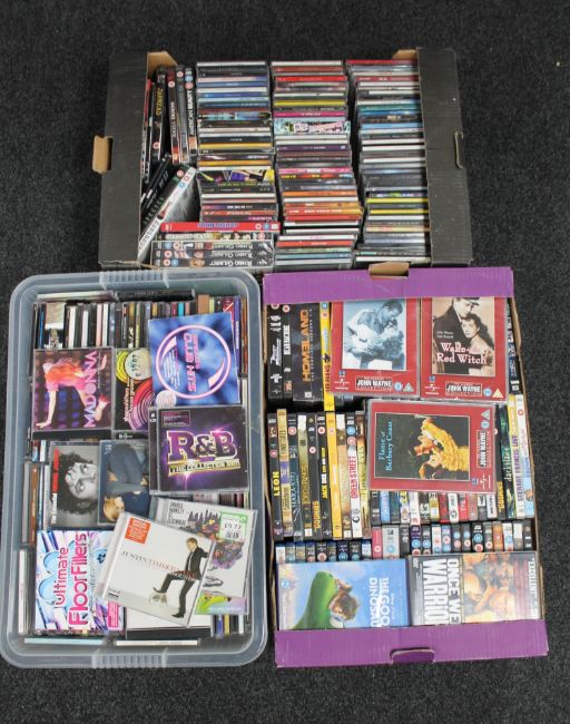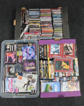 Three boxes of DVD's and CD's