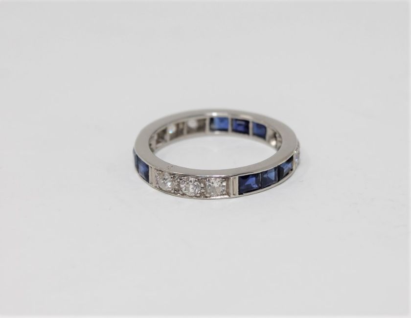 A fine antique platinum sapphire and diamond set full eternity ring, size N1/2