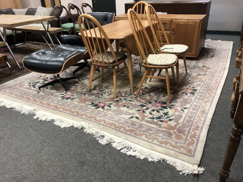 A fringed Chinese carpet, 270 cm x 370 cm