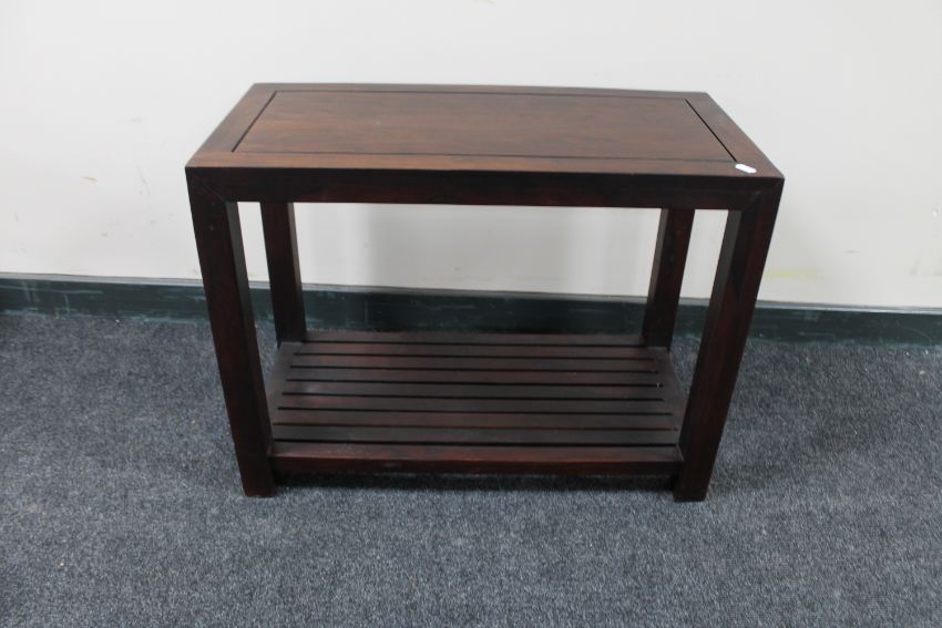 A contemporary hardwood side table