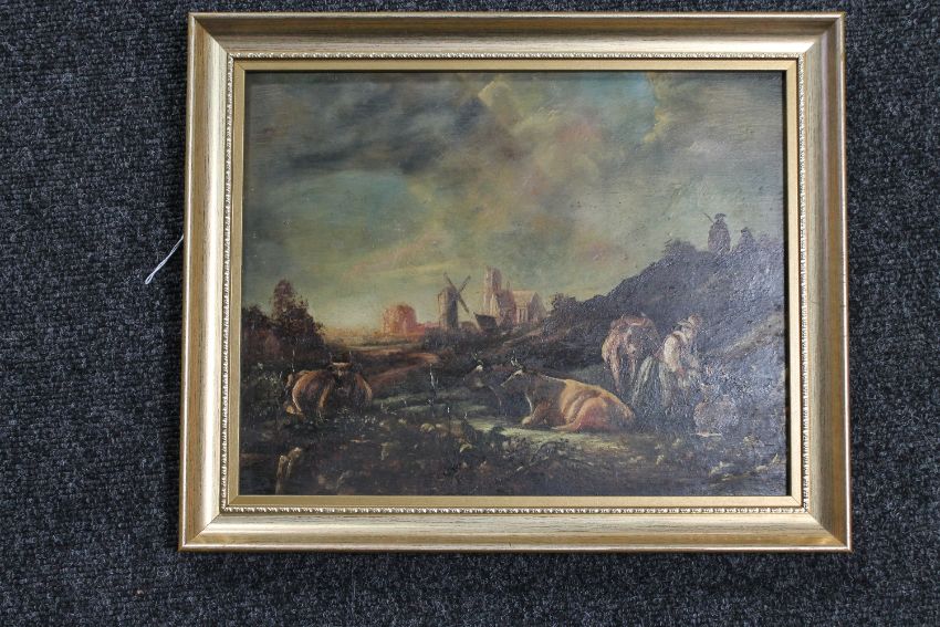 A framed 19th century Dutch oil on panel, bulls in a field, signed F.G. Farmer