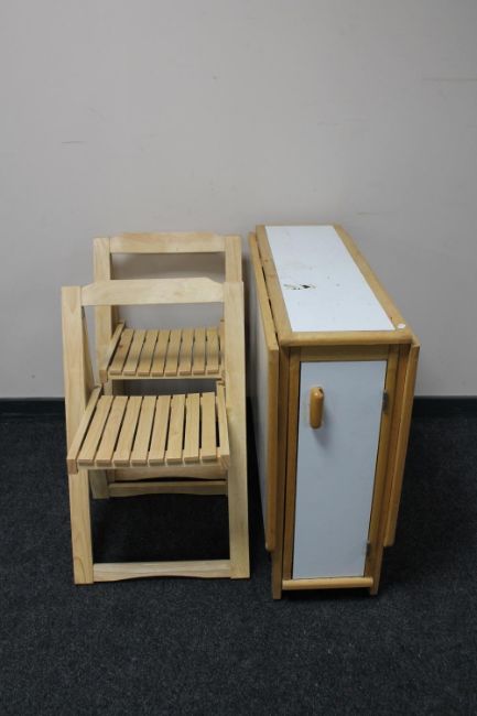 A contemporary drop leaf kitchen table and four chairs
