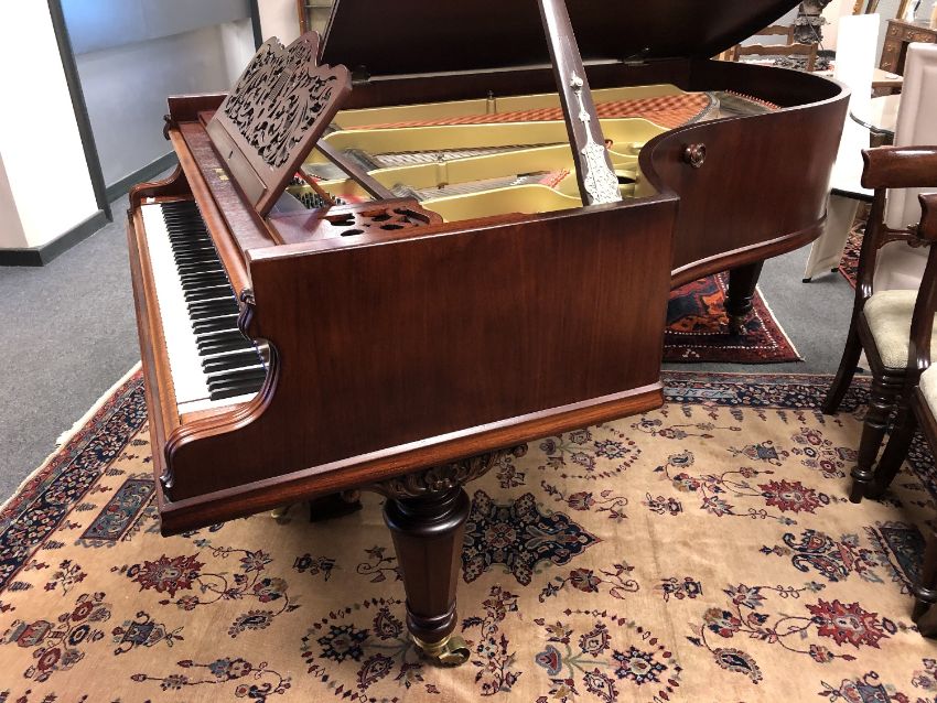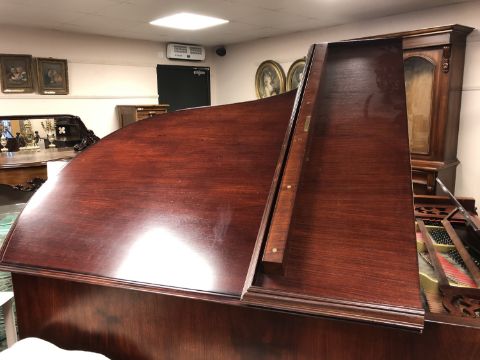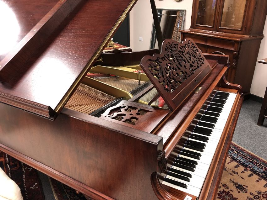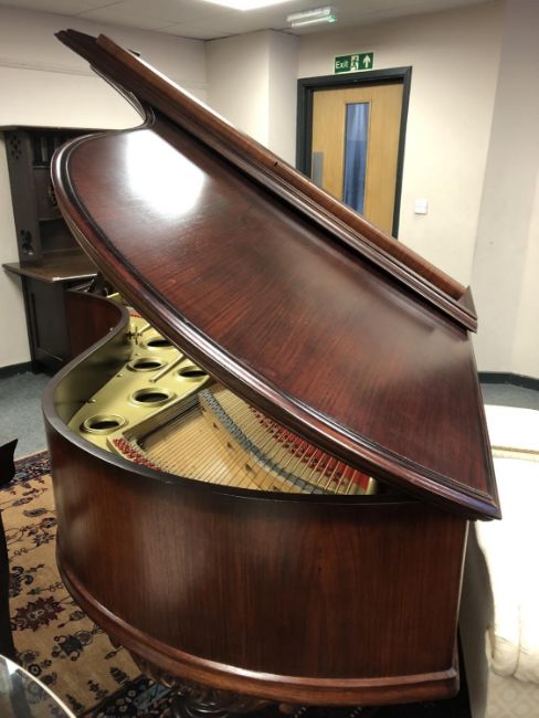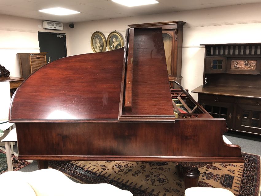 A mahogany cased boudoir grand piano by Gebruder Knake, length 210 cm, width 150 cm