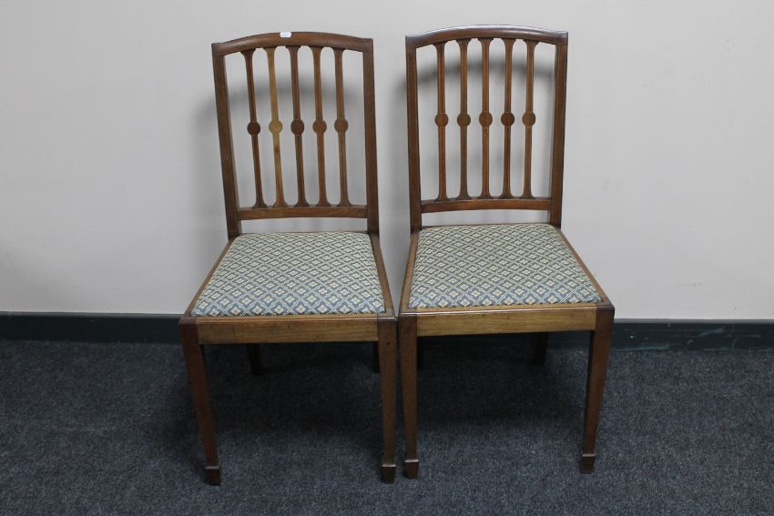 A pair of inlaid mahogany dining chairs