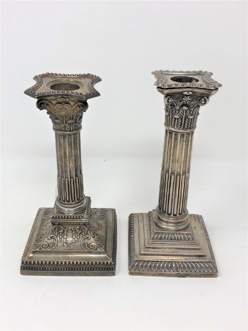 Two Victorian silver Corinthian column candlesticks, Sheffield 1896/97 (2)