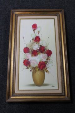 A gilt framed oil on canvas, Still life with roses