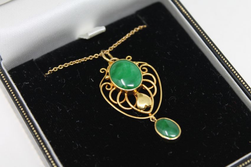 A 15ct gold jade set pendant on chain