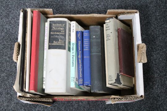 A box of books relating to anatomy, physiology etc