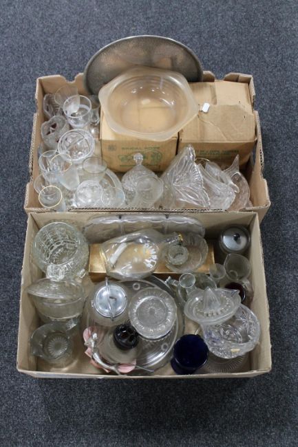 Two boxes of bridal rose tea china and assorted glass ware