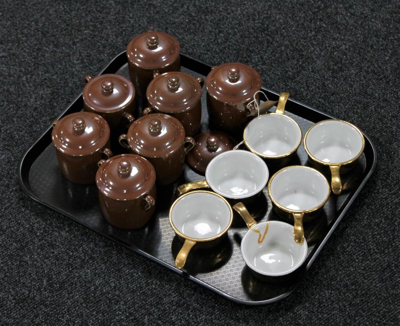 A tray containing seven Royal Worcester lidded pots together with a further six Royal Worcester ramekins with handles
