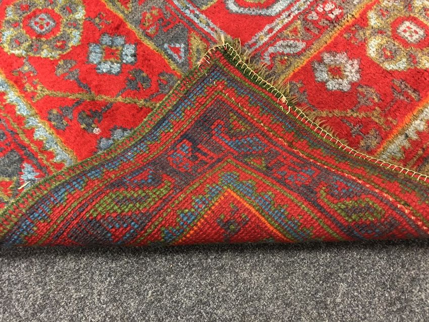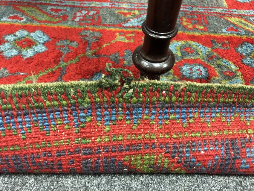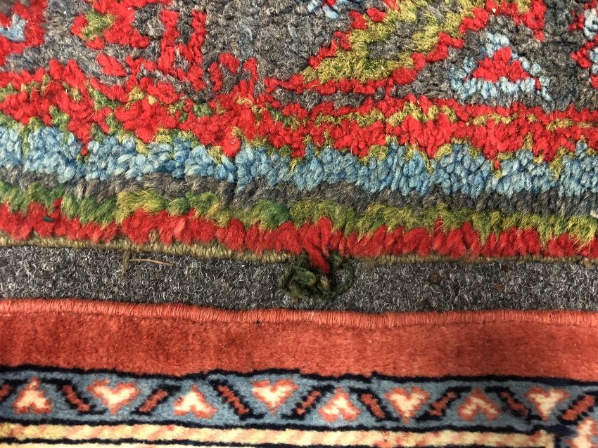 Pile generally good. I cannot see any splits or tears. There is fraying to both fringes and also to the selvedges in a couple of places.