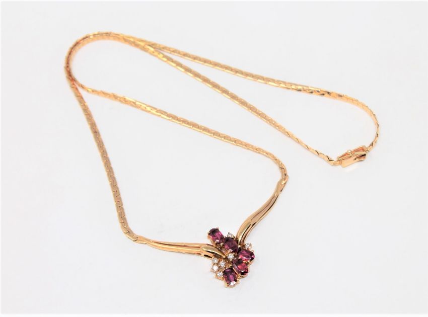 A fine quality 18ct gold ruby and diamond necklace, 12.4g.