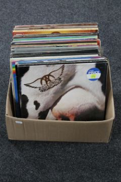 A box of vinyl LP's - Aerosmith, Abba, Motorhead, Rolling stones, Pink Floyd etc