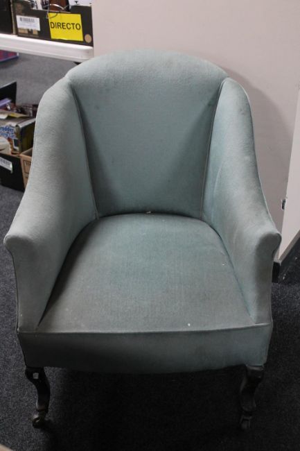 A Victorian tub chair upholstered in a turquoise fabric