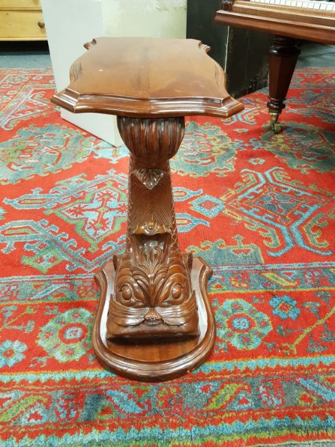 A carved mahogany plant stand in the form of a fish, height 68 cm.