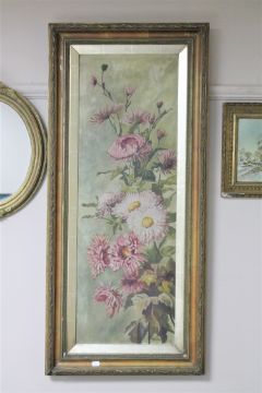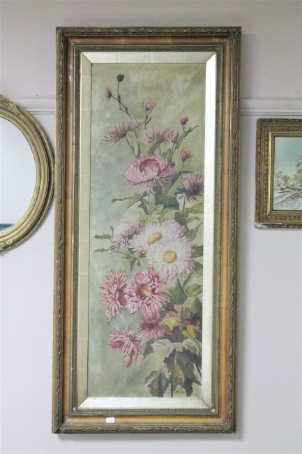An antiquarian gilt framed oil on canvas depicting flowers, indistinctly signed
