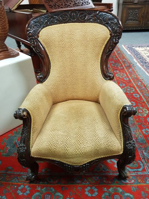 A pair of heavily carved Victorian style armchairs, width 75 cm (2)