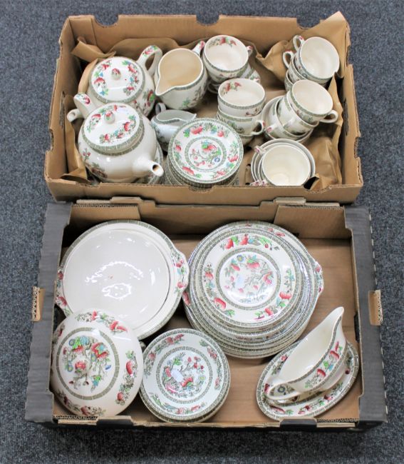 Two boxes of Johnson Brothers Indian Tree tea and dinner ware