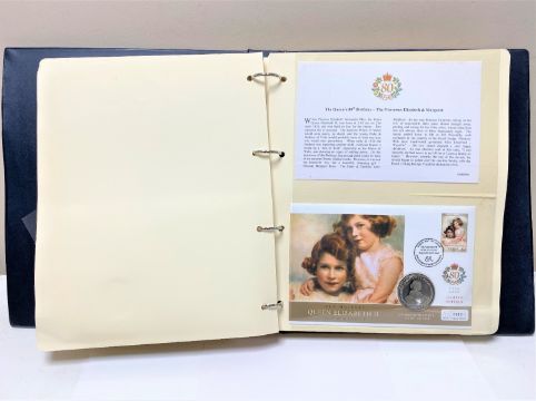An album containing The Queen's 80th Birthday Coin cover collection, issued number 00552.