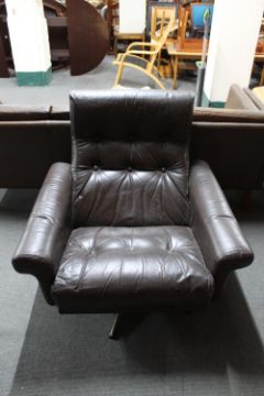 A mid 20th century Danish brown leather swivel armchair on a chrome base