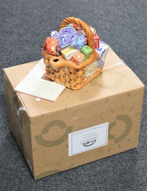 A boxed Ringtons Monty basket teapot with certificate number 2590