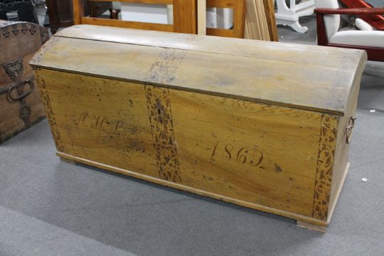 143cm by 60cm by 65cm. Some woodworm visible to dome top.