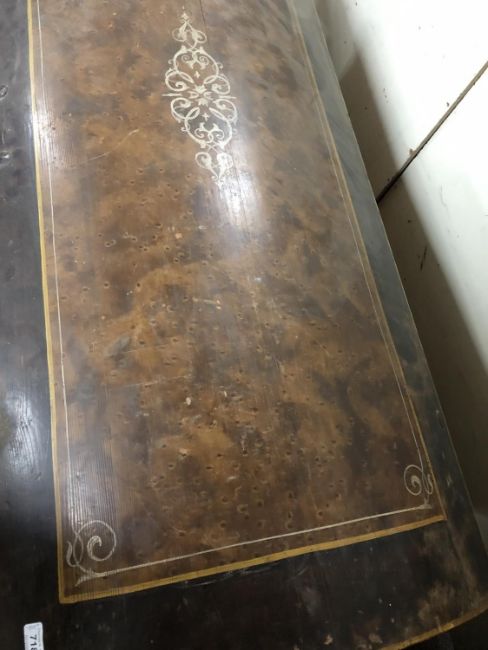 140cm wide by 60cm deep by 70cm high. Section of wood missing to lower left corner. Split to top. noticeable woodworm damage to top and some of interior.. With key.