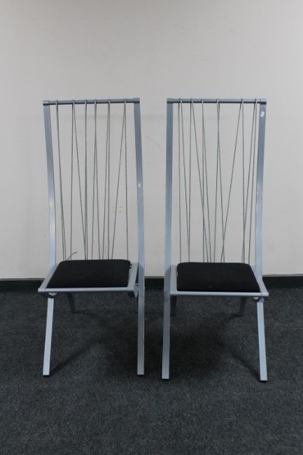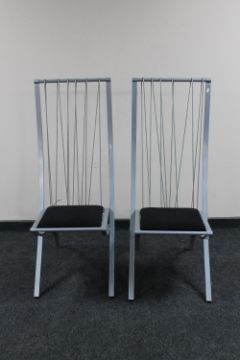 A pair of contemporary metal high backed dining chairs