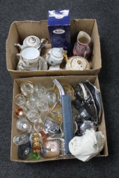 Two boxes of Japanese tea service, boxed Regal figure, glass ware, plated wares etc