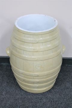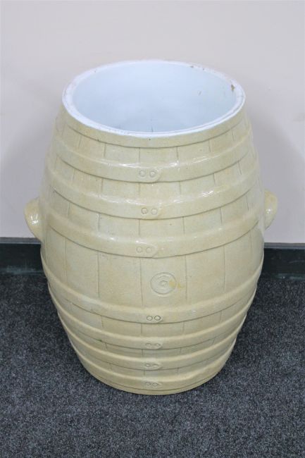 An early 20th century glazed pottery flour barrel