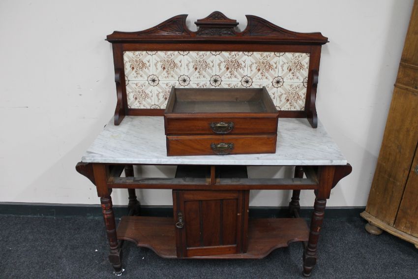 A Victorian mahogany marble topped and tiled back wash stand