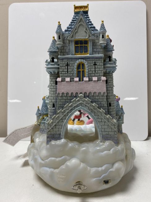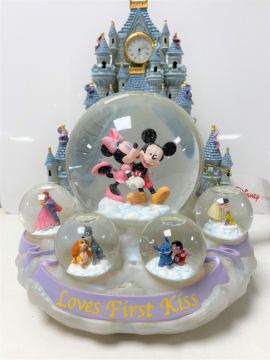 A Disney Love First Kiss Mickey Mouse working clock and light up snow globe in original box