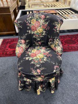 A mid twentieth century bedroom chair upholstered in a floral fabric