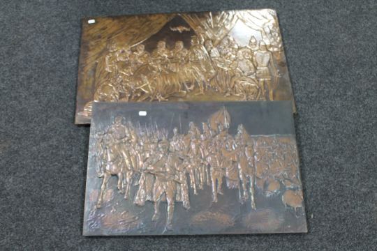 Two copper relief plaques