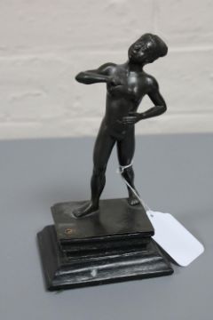 An early twentieth century bronze figure depicting a naked lady, on stepped plinth, height 18.5 cm.