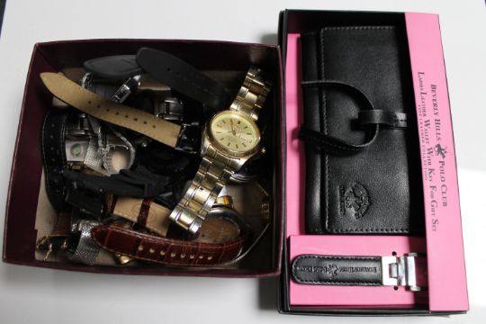 A quantity of wristwatches, Beverly Hill Polo Club wallet etc