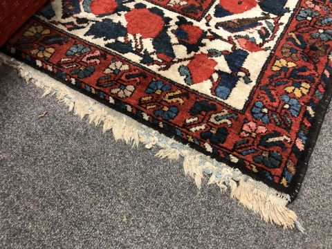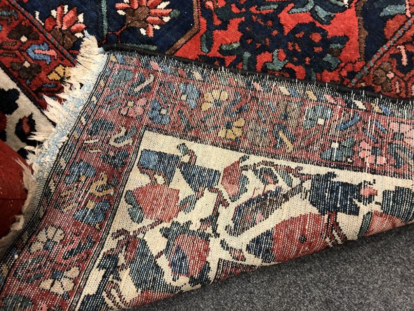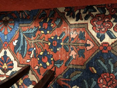 The carpet is in good condition. The pile is worn a little thin in some areas but is perfectly stable. The selvedges are intact. The fringes have been reduced, completely so at one end.