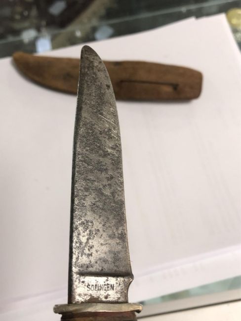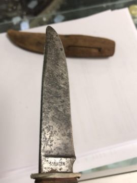 21cm overall. Blade pitted. Grip with some wobble. See images.