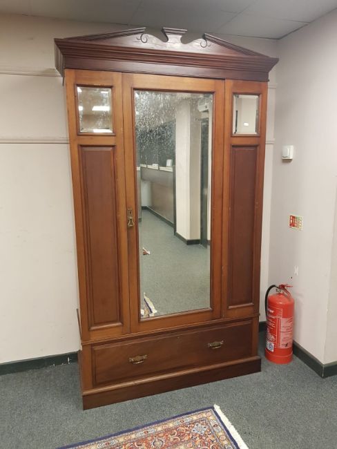 A late Victorian mahogany mirror door wardrobe, width 127 cm