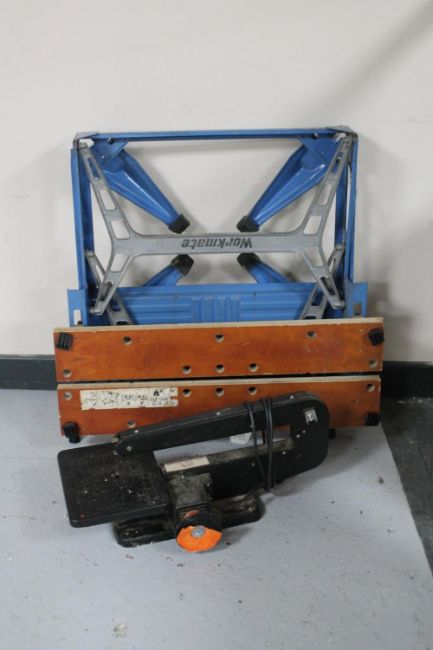 A folding Black & Decker workbench together with a Moto shop scroll saw