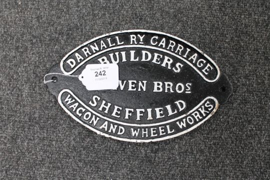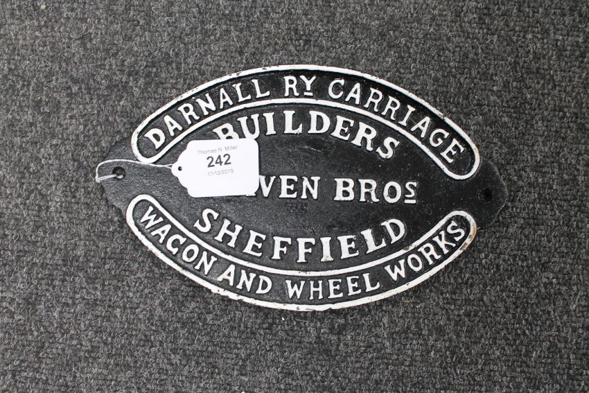 A metal railway sign : Craven Bros - Sheffield, 16 cm x 27 cm.