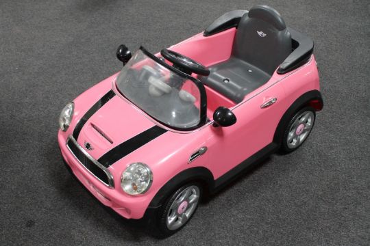 A child's electric Mini Convertible ride in car, with charging leads