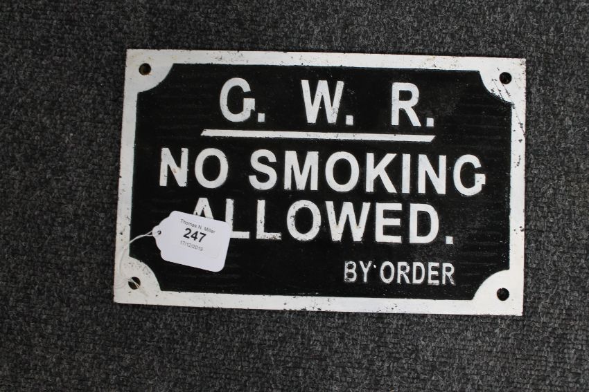 A metal railway sign : No Smoking Allowed BY Order, 19 cm x 30 cm.