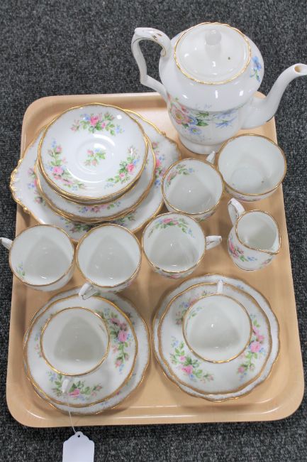A tray of twenty-one piece Rosaline bone china tea service and a further floral pattern bone china teapot