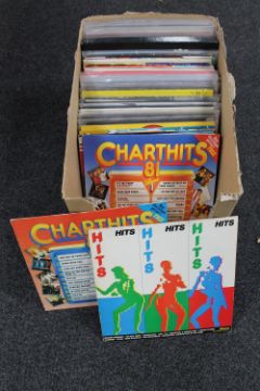 A box of LP records : Led Zeppelin, The Beatles, etc